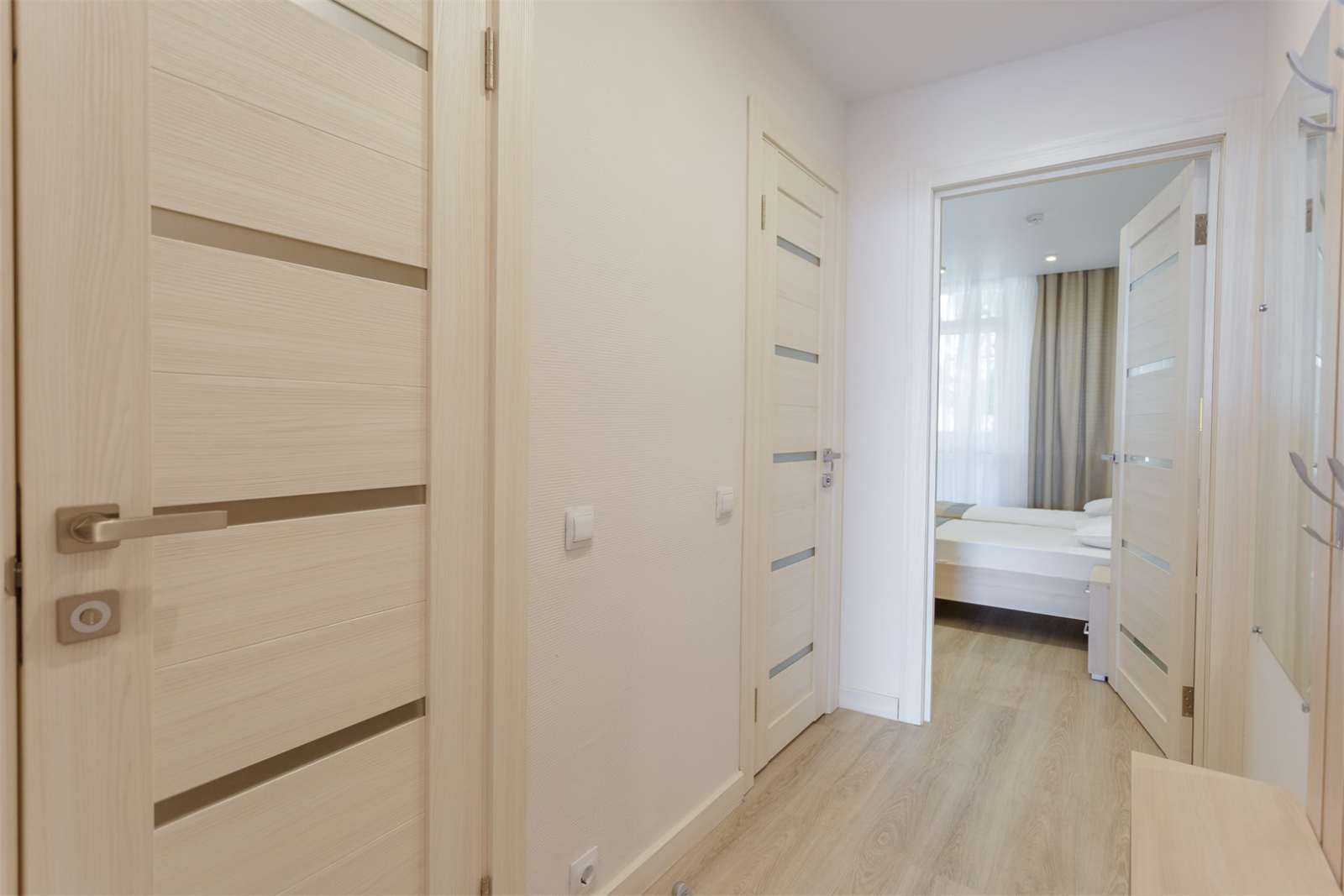 Площадь номера - 30 кв.м. 4 осн. места. Балкон. Мебель: кровати односпальные, прикроватные тумбочки, стол, шкаф. Оборудование: кондиционер, телевизор, телефон, холодильник, чайный набор посуды, электрочайник. Санузел: с душем, туалетные принадлежности, фен. Сервис: смена полотенец (по требованию в первой половине дня), смена постельного белья (1 раз в 3 дня), уборка номера (ежедневно), услуги телефонной связи по территории отеля.