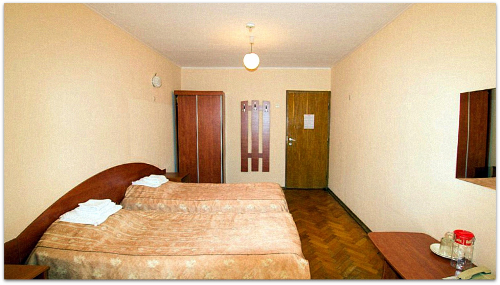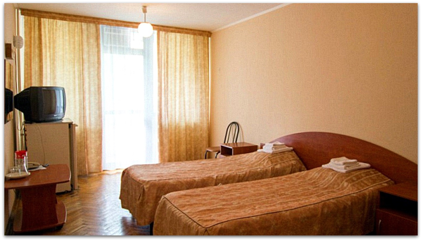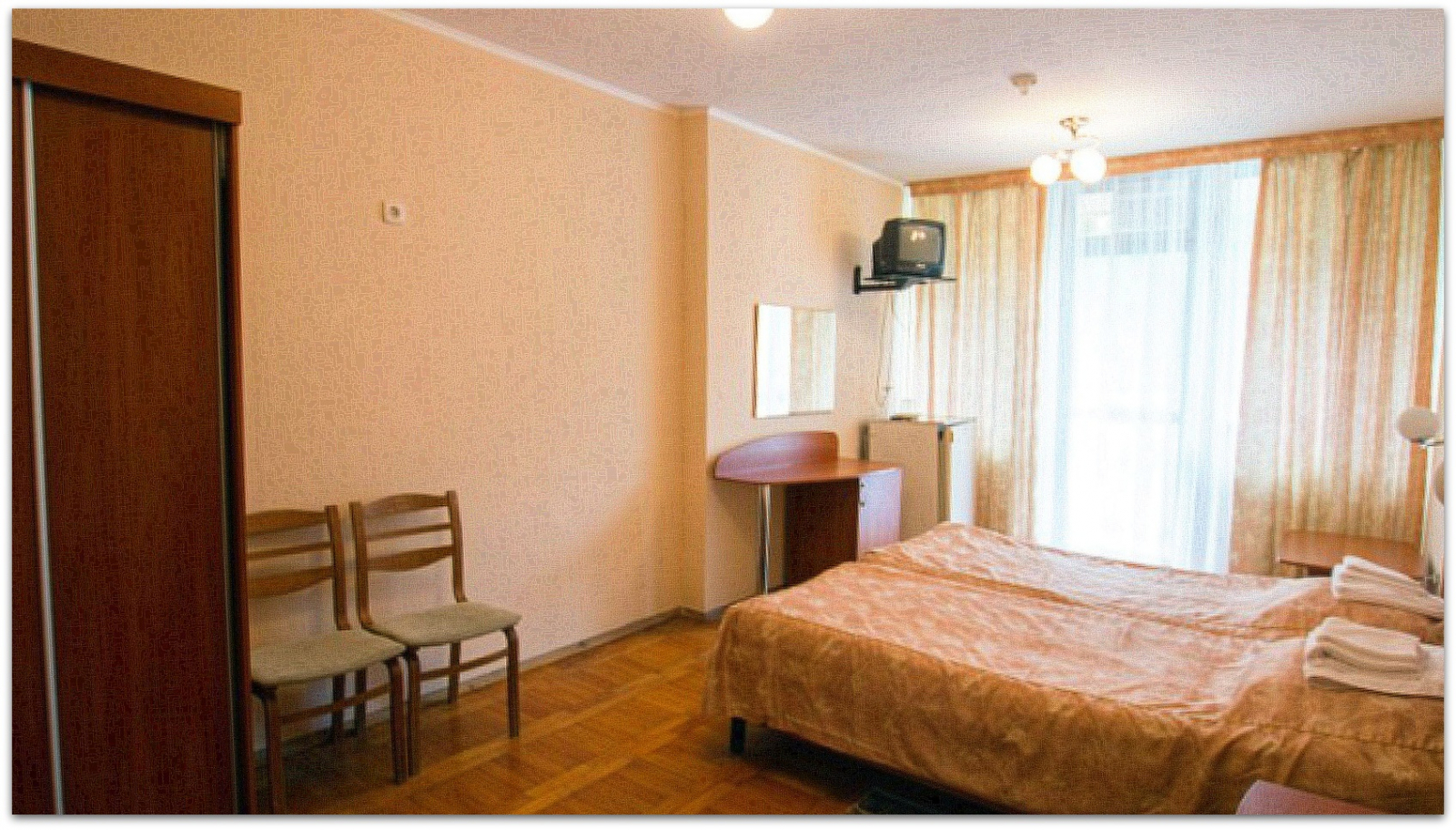 Площадь номера - 30 кв.м. 4 осн. места. Балкон. Мебель: вешалка, кровати односпальные, прикроватные тумбочки, стол, столик журнальный, шкаф. Оборудование: кондиционер, телевизор, телефон, холодильник. Санузел: с душем, туалетные принадлежности, фен. Сервис: смена полотенец (по требованию в первой половине дня), смена постельного белья (1 раз в 3 дня), уборка номера (ежедневно), услуги телефонной связи по территории отеля.
